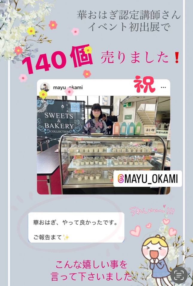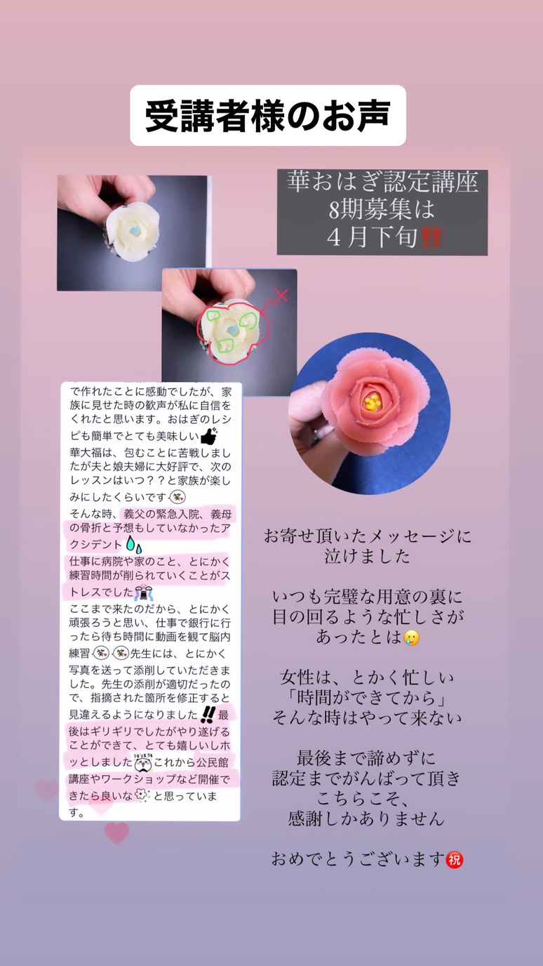 オリジナルの講座「華おはぎ認定講座」で7期まで、満席 ⇒ 増席 ⇒ 満席 となる